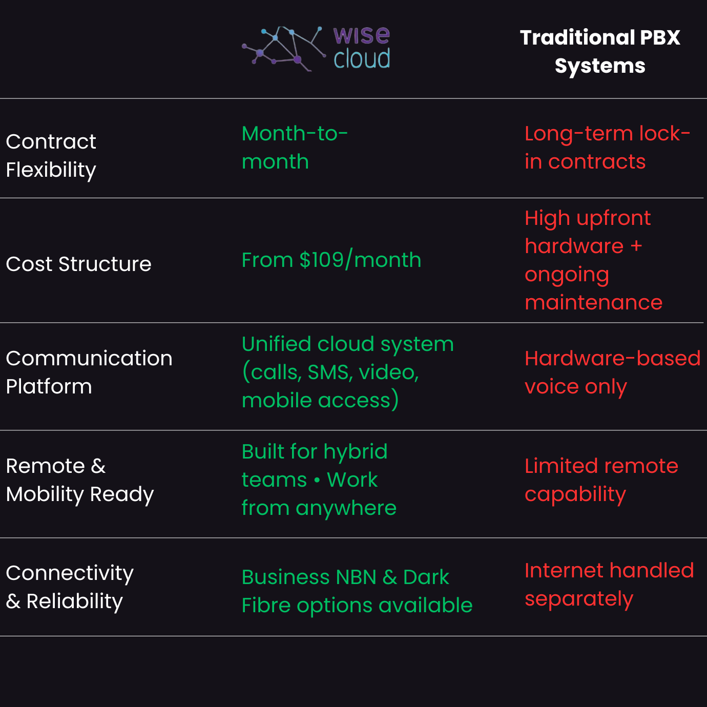 Yes. Modern cloud systems are designed for uptime, scalability and redundancy. Combined with Business NBN or Dark Fibre connectivity, reliability often exceeds traditional PBX setups.